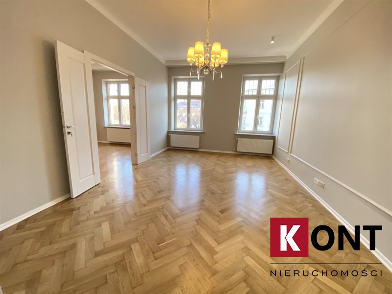 Jeśli szukasz szykownego biura na swoja siedzibę firmy to mamy dla ciebie świetną propozycję w centrum Krakowa. Przedmiotem wynajmu jest reprezentacyjny lokal/mieszkanie o wyjątkowym standardzie, znajdujące się w ponad 100 letniej kamienicy w ścisłym centrum Krakowa/Nowy Kleparz, przy ulicy Długiej - jednej z najbardziej popularnych ulic w centrum Krakowa. Kamienica ma odremontowaną elewację frontową, a prestiżowy i elegancki lokal znajduje się na jej II piętrze. Pow. użytkowa wynosi ok. 101 m2 i składa się z czterech pomieszczeń (3 pokoi i niezależnej kuchni), łazienki z WC, przedpokoju oraz balkonu. Do lokalu przynależy piwnica o pow. ok. 10 m2. Lokal został wyremontowany i wykończony w wysokim standardzie, gdzie wszystko było zrobione z pieczołowita starannością.