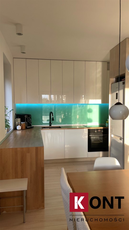 Mieszkanie w stanie ogólnym bardzo dobrym, wykończone z dbałością o detale i funkcjonalność. Jest w pełni umeblowane i wyposażone – gotowe do wprowadzenia bez dodatkowych nakładów finansowych. Kuchnię zdobi nowoczesna zabudowa wraz z kompletem dobrej jakości sprzętu AGD (w cenie: zmywarka, piekarnik, płyta indukcyjna, lodówka oraz okap). Sporą wartości dodaną jest pozostała zabudowa meblowa w holu, sypialni oraz w łazience (w cenie również pralka). Zabudowa meblowa została zaprojektowana na wymiar i wykonana z materiałów o podwyższonym standardzie, gwarantując funkcjonalność i elegancki wygląd.