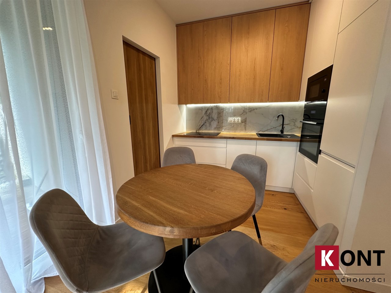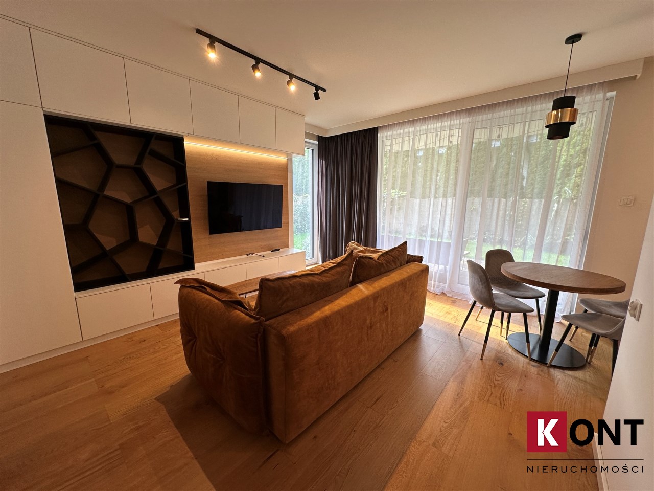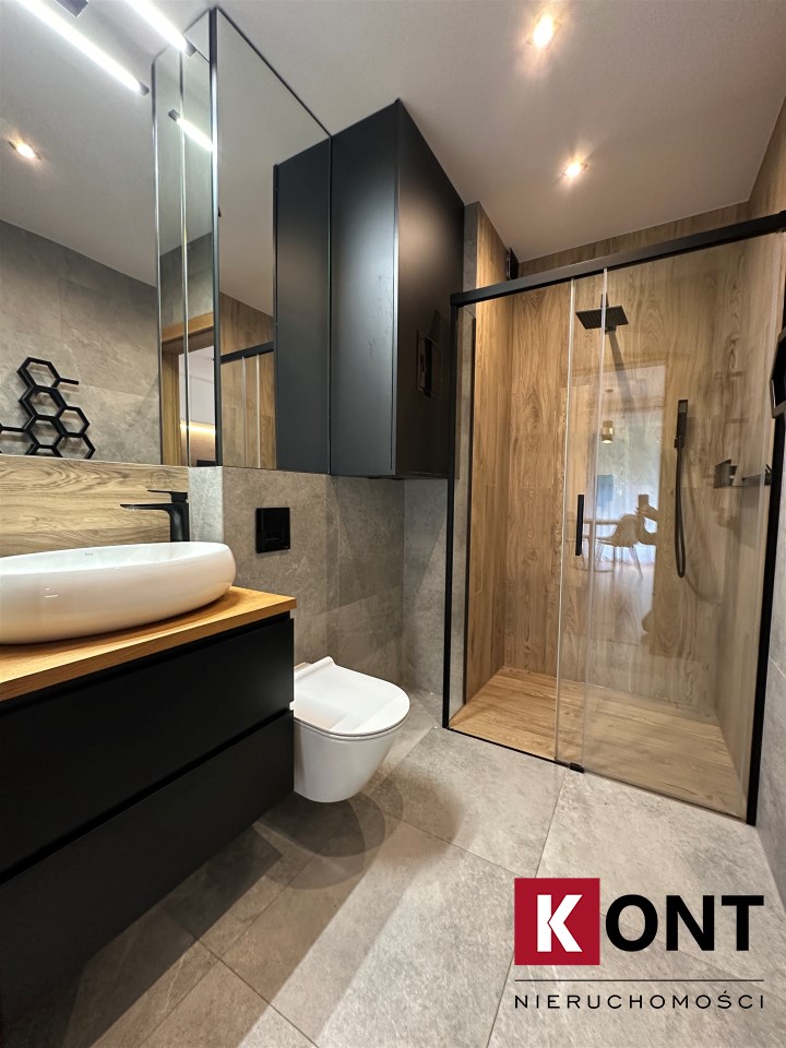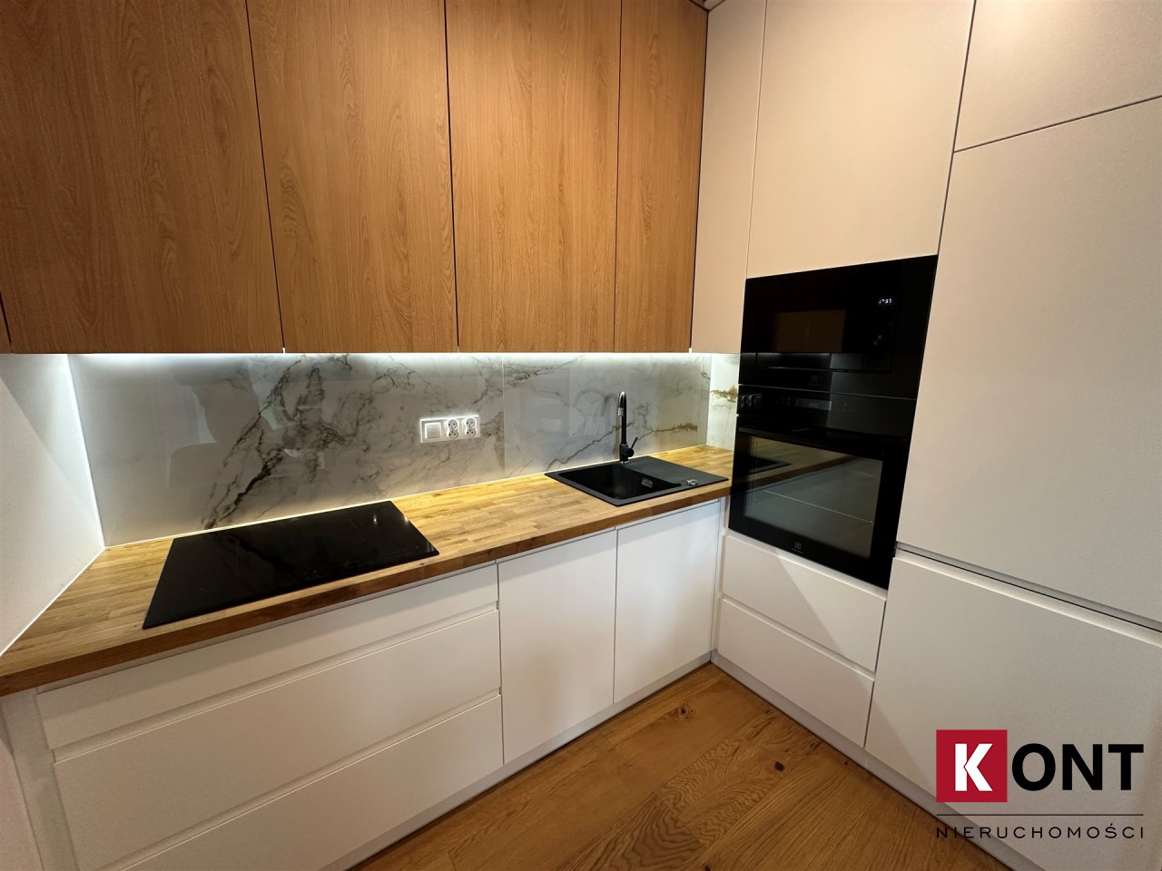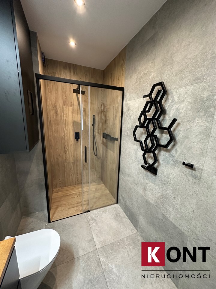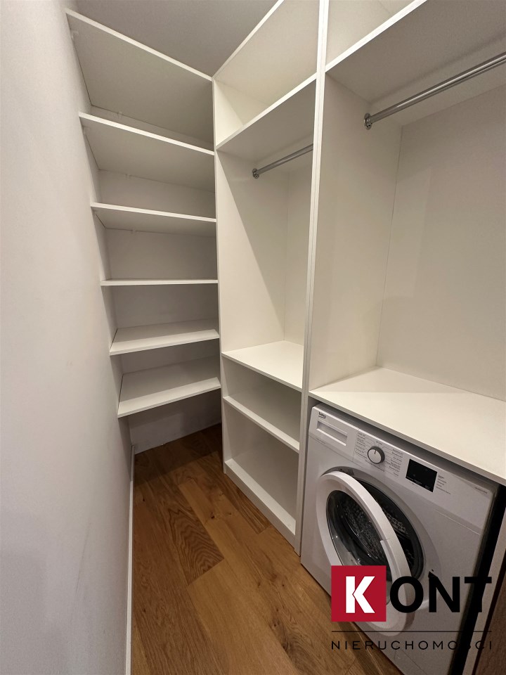 Mieszkanie zostało gustownie urządzone na podstawie indywidualnego projektu. Wyróżnia się przemyślanym układem wnętrz i nowoczesnym wykończeniem. Na docenienie zasługują fornirowana podłoga, meble zrobione na zamówienie oraz dobrej jakości sprzęty (m.in. płyta indukcyjna, piekarnik, mikrofala, lodówka, zmywarka, pralka, 2 telewizory). W przedpokoju jest zainstalowana bardzo pojemna szafa w zabudowie. Ponadto, tuż obok kuchni znajduje się bardzo praktyczne pomieszczenie gospodarcze z zabudową meblową. Mieszkanie wyposażone jest w indywidualne ogrzewanie z piecem dwufunkcyjnym gazowym, który rozprowadza ciepło w podłodze. A to w połączeniu z nowoczesnymi, bardzo dobrej jakości oknami (Winkhaus), wpływa na niskie zużycie gazu. Dodatkowo, każde pomieszczenie posiada indywidualny regulator temperatury. W mieszkaniu funkcjonuje stałe łącze internetowe.