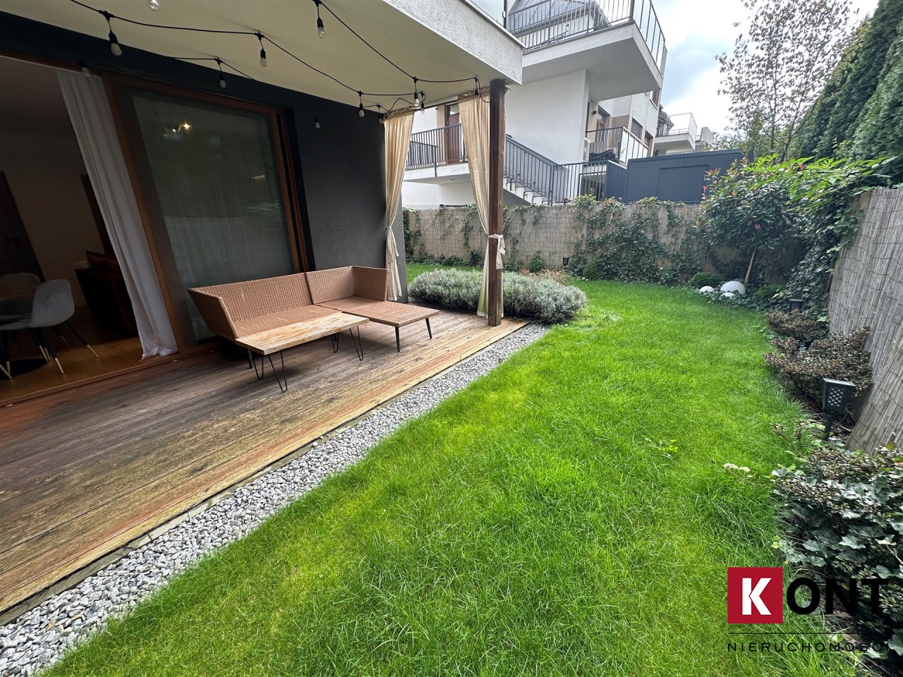 Do wynajęcia 2-pokojowe mieszkanie z aneksem kuchennym, położone w bardzo spokojnej części Woli Justowskiej. Mieszkanie ma powierzchnię 43 m2 i położone jest na parterze w kameralnym dwumieszkaniowym budynku, na ładnie zaaranżowanym, ogrodzonym i wydzielonym osiedlu. Wokół budynków wyróżniają się ładnie urządzone i pielęgnowane tereny zielone. Atutem mieszkania jest duży taras z ogrodem o powierzchni 50 m2. Mieszkanie posiada komfortowy dwustronny układ (południe - zachód). Do mieszkania przynależy miejsce postojowe. Drugi samochód można zaparkować na podjeździe. Mieszkanie jest atrakcyjnie urządzone i wyposażone.